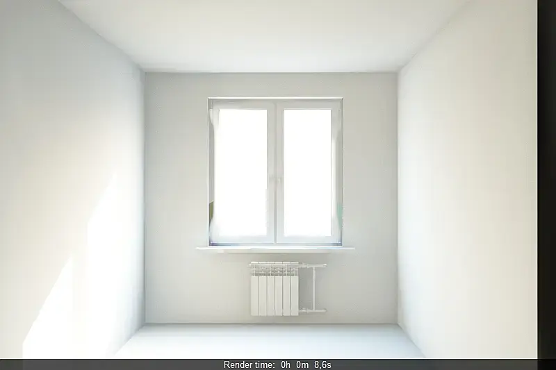 Здравствуйте. Помогите пожалуйста с проблемой (скрины). Геометрия стен - нормальная: Overlapping Faces и Overlapping Verteces - по нулям. Окна вставлены с небольшим заглублением в геометрию стен (1 мм). Фон - исключен из солнца. Стекол нет. Скайлатпорталы - внутри, в нише, возле окон, пересечений нет. Включены: Simple, Aff. diffuse, specular, reflection. Help!