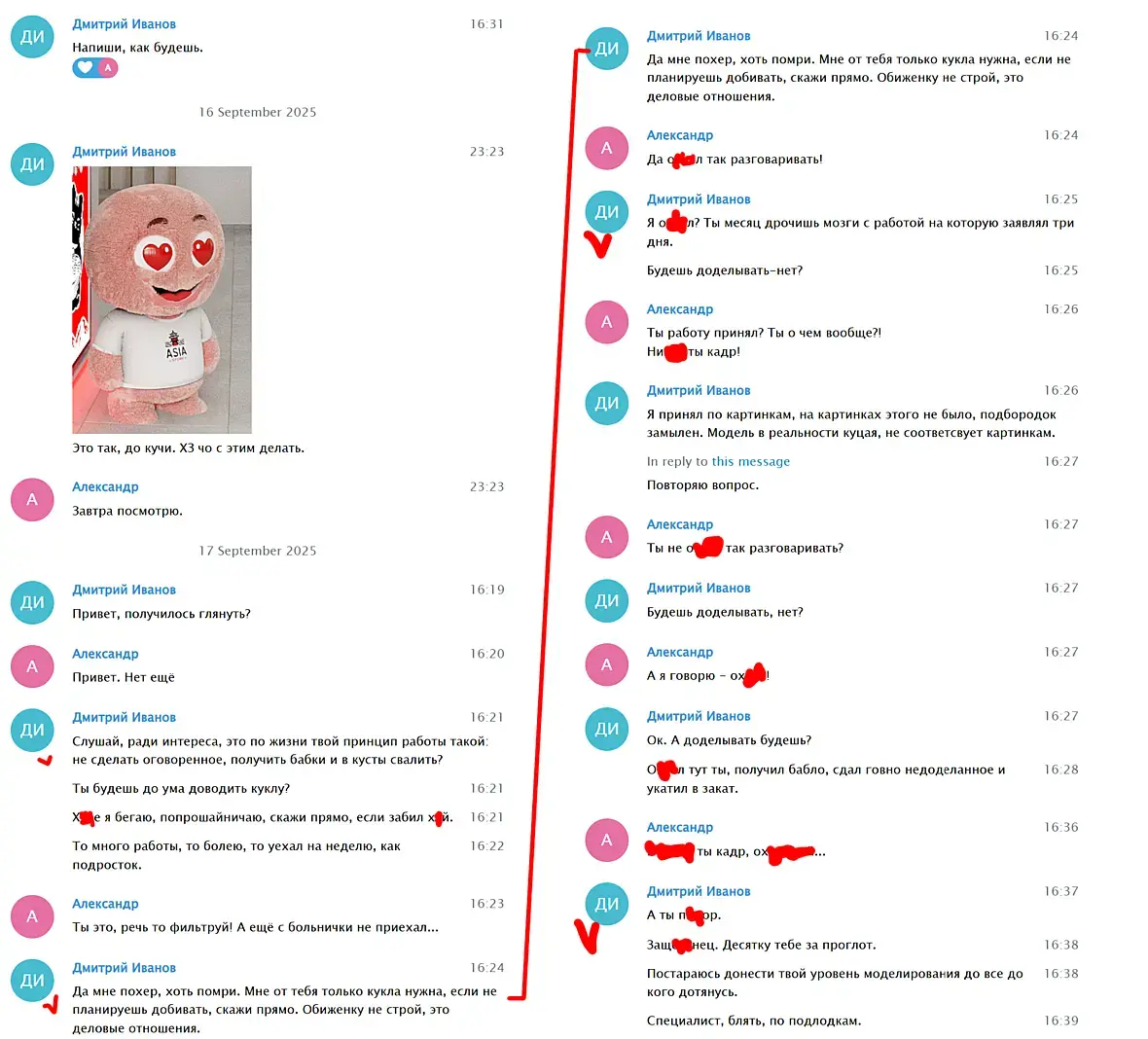 17 сентября он спрашивает, мол получилось ли глянуть. Я говорю ,что ещё нет и тут он начинает переходить на личности и оскорблять.