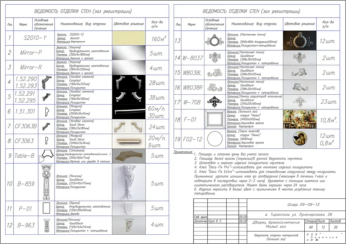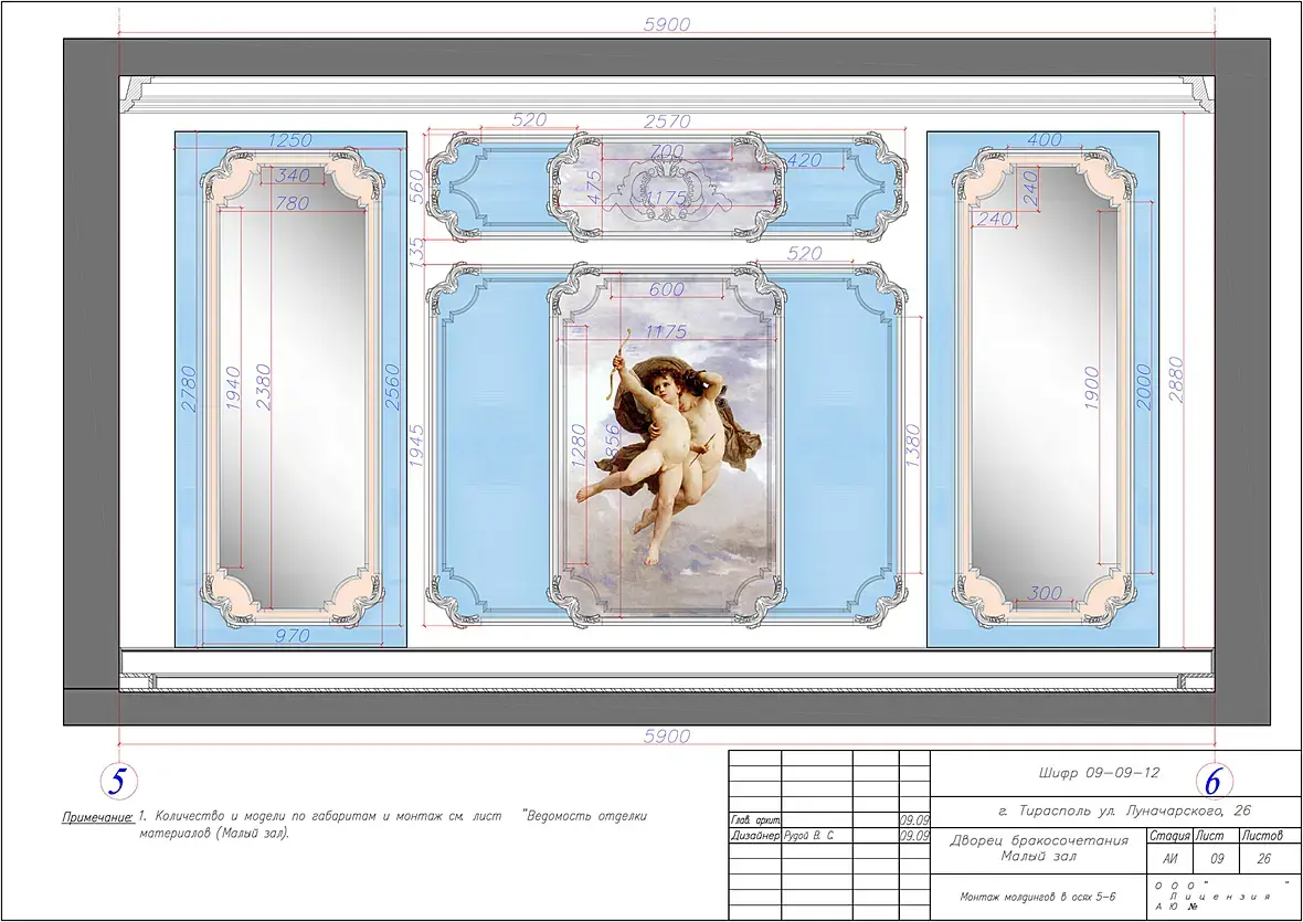 рендерните просто  ортогональные проекции (предварительно  выставив камере условия - ортографик.  и в автокаде проставьте размеры на листах , это  конечно  не по  ГОСТ но  зато  наглядно  и понятно ну или подетально готовьте автокадовскую  модель где лепнина вручную  отрисована в автокаде по подложке рендеров