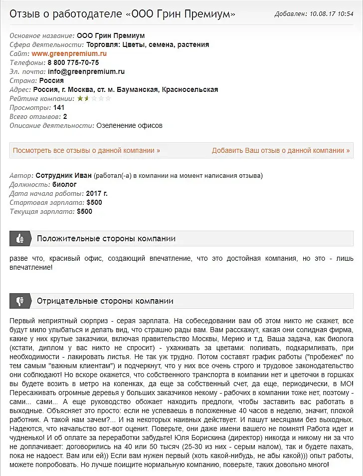 Хочу всех предупредить о компании Green Premium - greenpremium.ru - не желают оплачивать по договору проделанную работу.