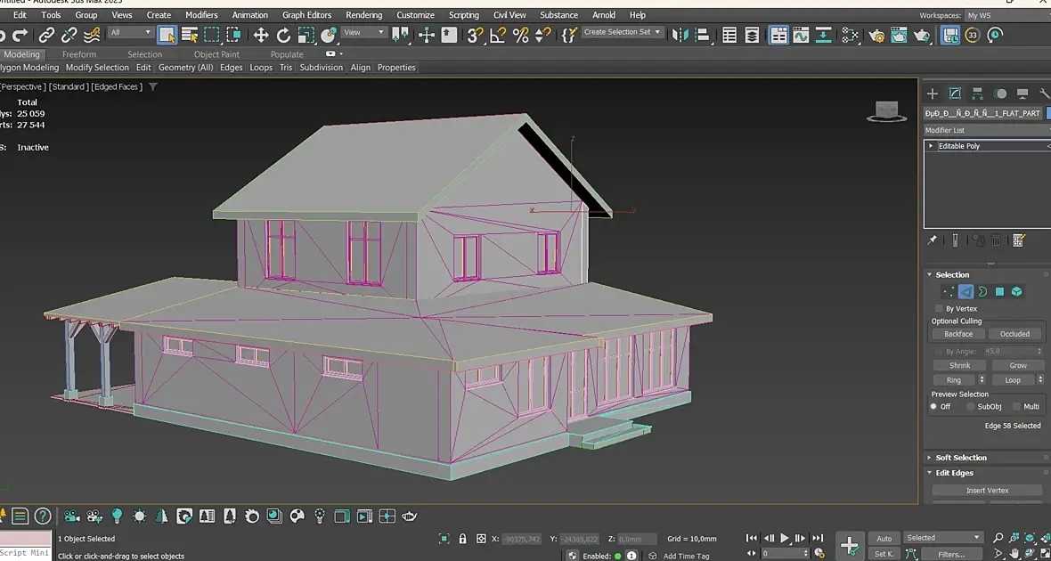 Здравствуйте, замучалась уже, что только не перепробовала....переношу OBJ из ArchiCad в 3Dmax-получаю вот ЭТО.... Мало того, что материалы отсутствуют, так и сетка-УЖАС! Что делать??? Как привести сетку в нормальное 4хугольное состояние??? Quadrify All не помогает((
