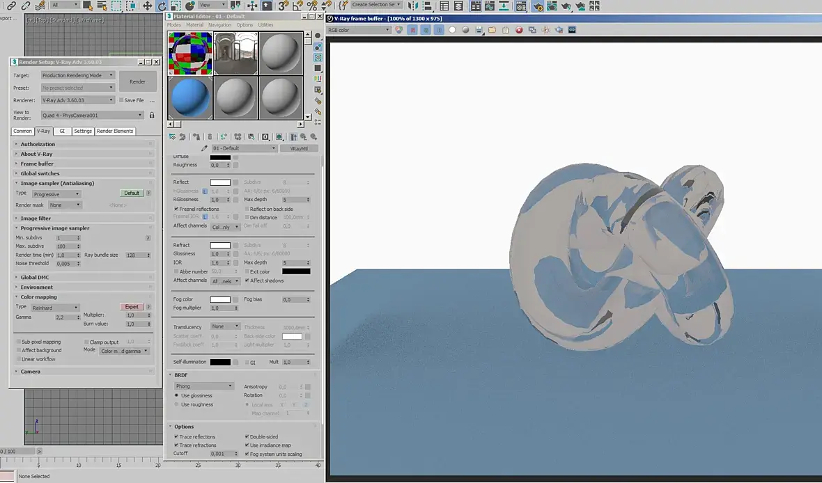 trp посоветую настраивать мат на простом боксе и только , потом с применением uvw map для рефлектов и бампа