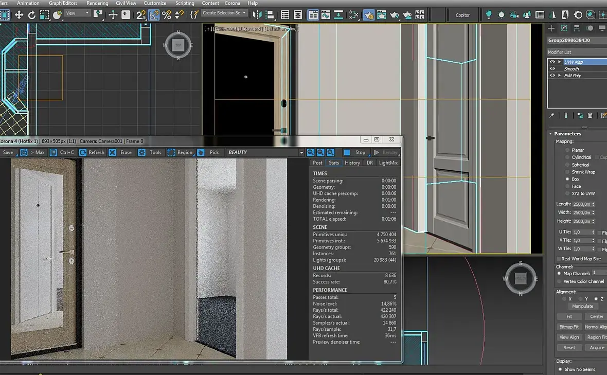 ДД) Полотна дверей на рендере черные или прозрачные Подскажите, где искать ошибку? Что-то в геометрии явно, т.к. на порталах, наличниках и прямых полотнах текстура норм... https://3ddd.ru/3dmodels/show/dveri_sofia_elegant_1 Использовала эту модель, размеры через Edit Poly подгоняла...