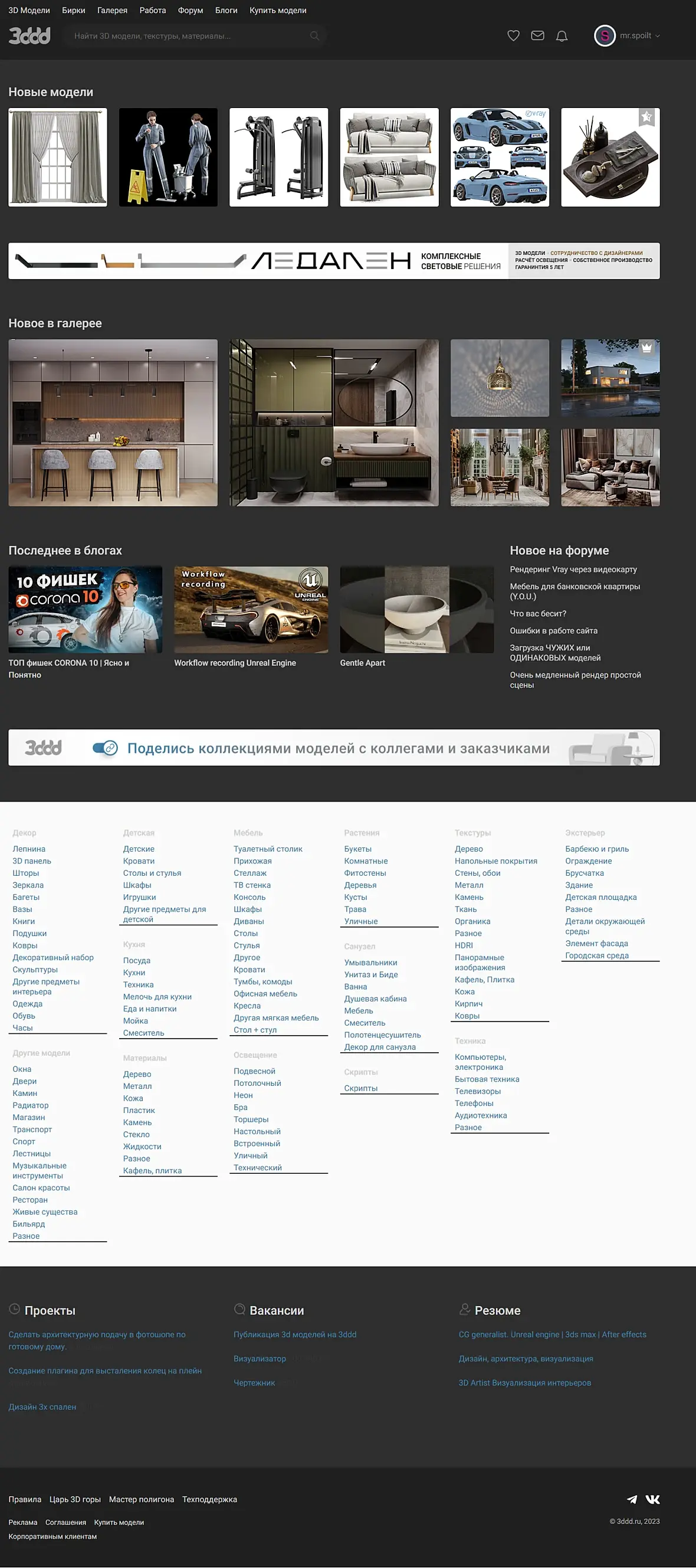 Информативность первого экрана главной страницы потрясающая! На пол экрана логотип, который нахер не нужен вообще, строка поиска, 1 модель и мастер полигона, который также нахер не нужен.
