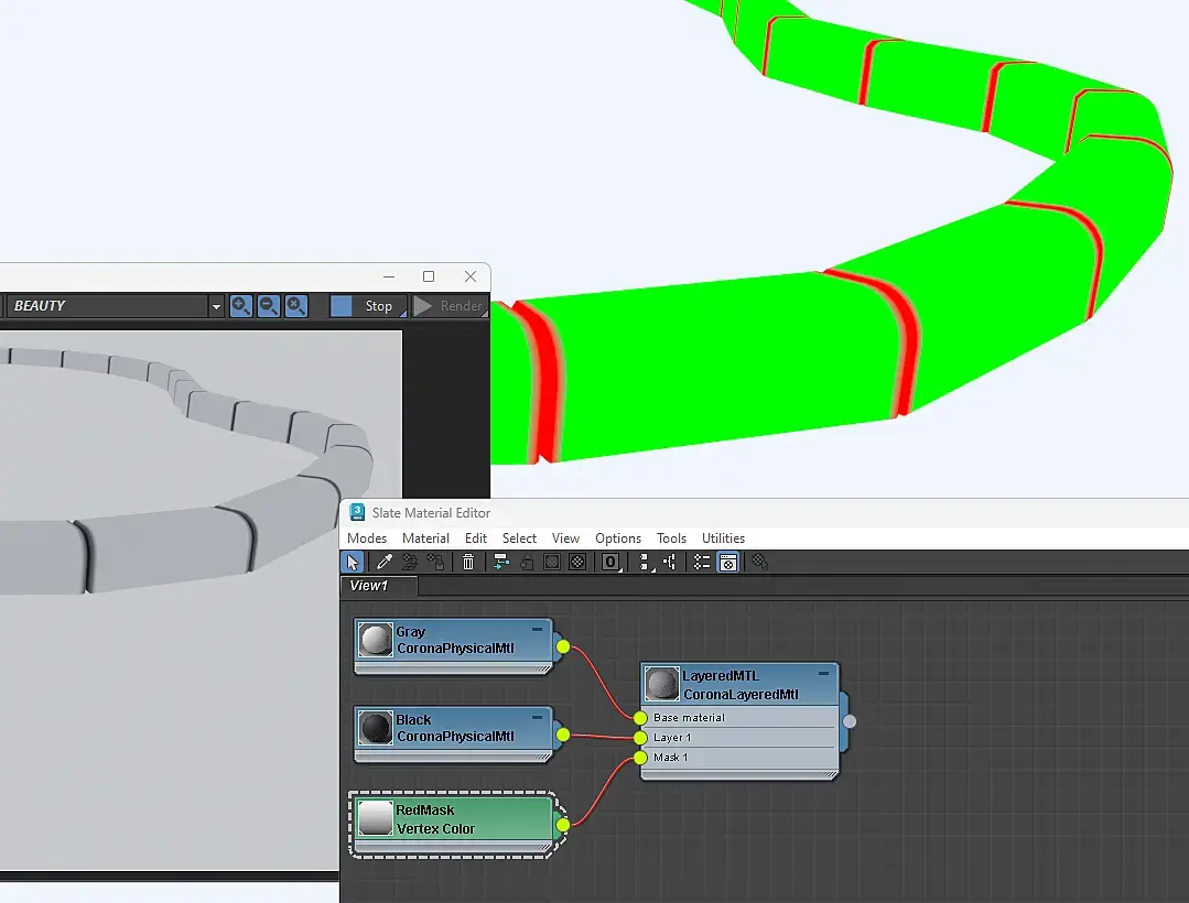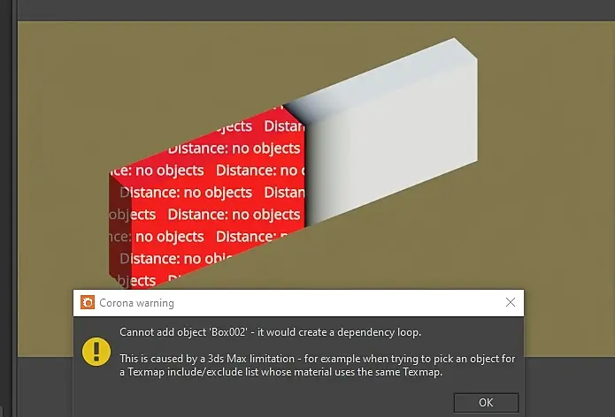 Объект 2 - Материал 2 с дистанцией от объекта 1 = так нельзя, между объектами 1 и 2 уже есть зависимость, т.е. если 1 ссылается на 2, то 2 не может ссылаться на 1 т.к. это дает ошибку круговой ссылки (dependency loop).