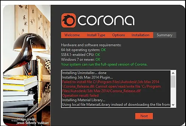 | Цитата shadeNat: Кто-нибудь сталкивался с проблемой при установки Corona 1.7. При установке выдаёт ошибку (скрин) Все предыдущие версии предварительно подчищены и удалены...
