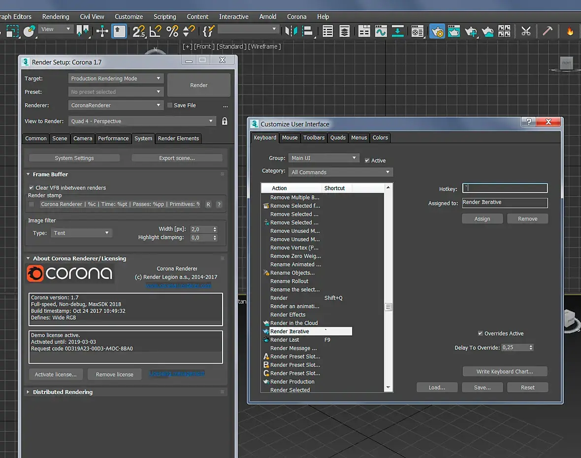 Поставил 2018 макс поверх 16-го, на том стояла корона 1.7, она же автоматом прилетела и в новый макс, но почему-то слетел Render Interactive. У меня на него горячая кнопка поставлена и вот, жму я ее, а вместо интерактивного стартует обычный рендер. Что не так, не пойму. Кнопку перепроверял!