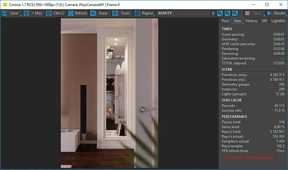 Made the new direct light solver optional and off by default (there is switch in performance settings) to prevent problems in scenes with nonphysical fakes and transparent lights that we cannot fix now. We will fix these problems for the 1.8 release, and the solver will be always enabled.