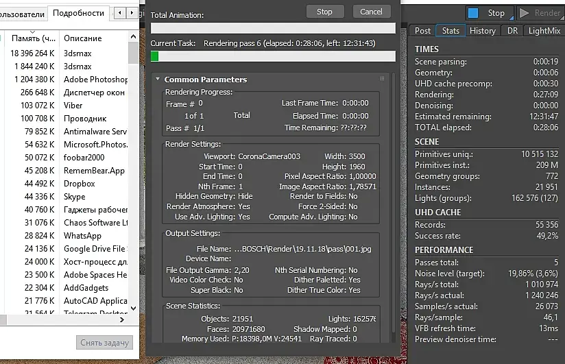 Ребят, а кто знает в чем проблема. Идет рендер, макс сворачиваю, подхожу через какое то время, щелкаю по иконке макса чтобы развернуть и начинается какая то ерунда, корона начинает сворачивать окна разворачивать итак может продолжаться до бесконечности, вплоть до принудительного закрытия макса, при этом в диспетчере задач числиться что макс с короной не отвечают.