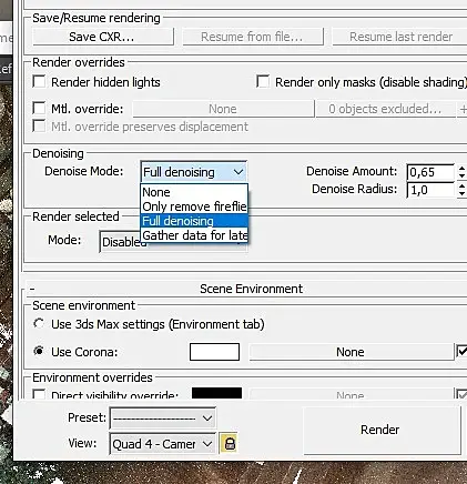 не работает Denoise Mode, после кнопки Стоп сразу останавливается рендер не "делая " denoise