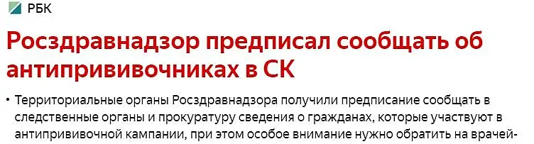 антипрививочников не поддерживаю, но не совсем понимаю, о чем должны докладывать следственным органам, если в их действиях нет состава преступления, отказ от прививок не имеет правовых последствий, за исключением некоторых стран, где вакцинация принудительная на законодательном уровне и РФ не в их числе