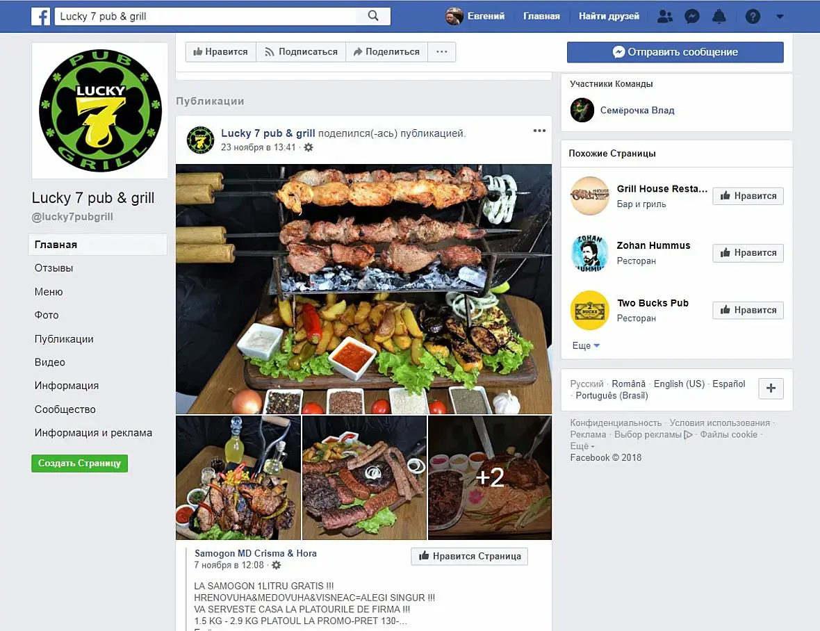 Сюда:https://www.facebook.com/lucky7pubgrill/?epa=SEARCH_BOX