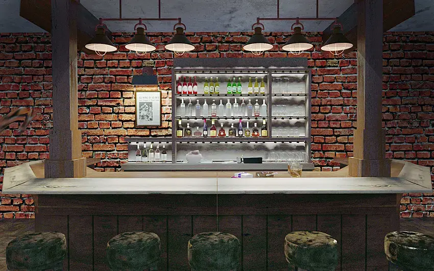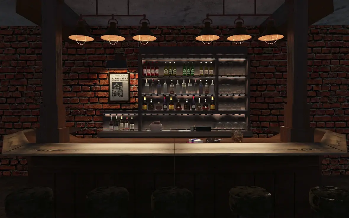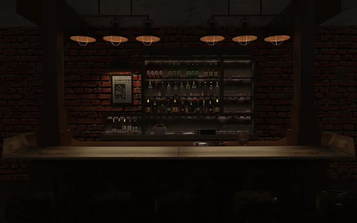 Если я правильно понимаю "Дизайн бара в темных оттенках" - это установка, то есть нужно использовать темные материалы, а не выключать везде свет что бы было темно
