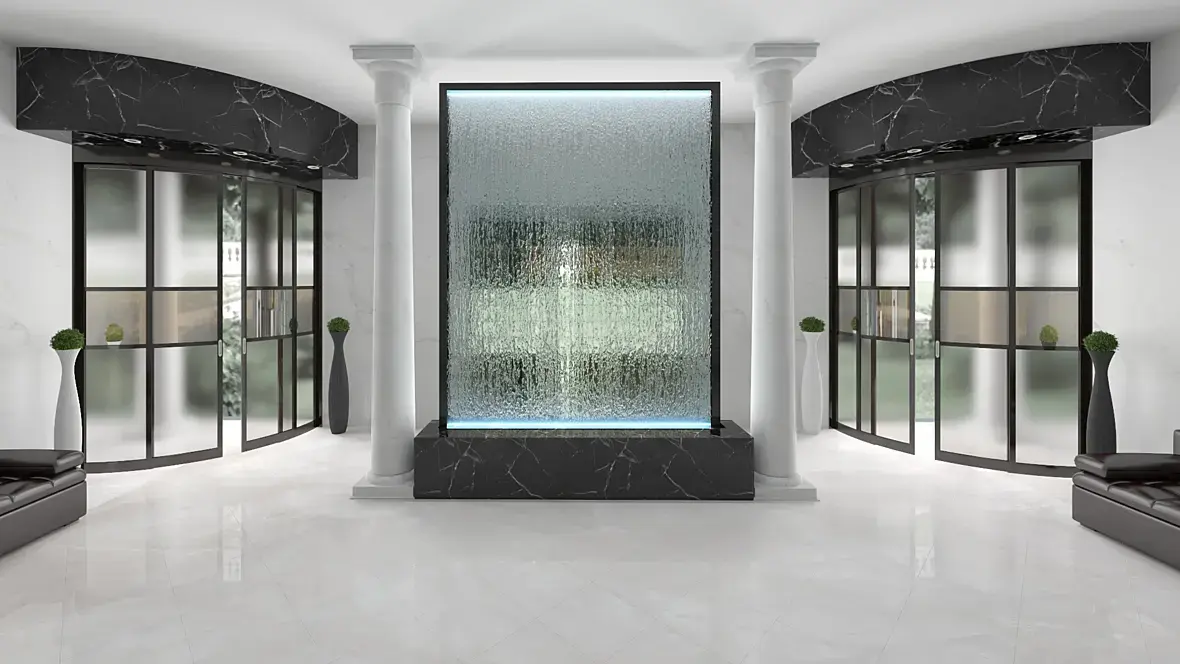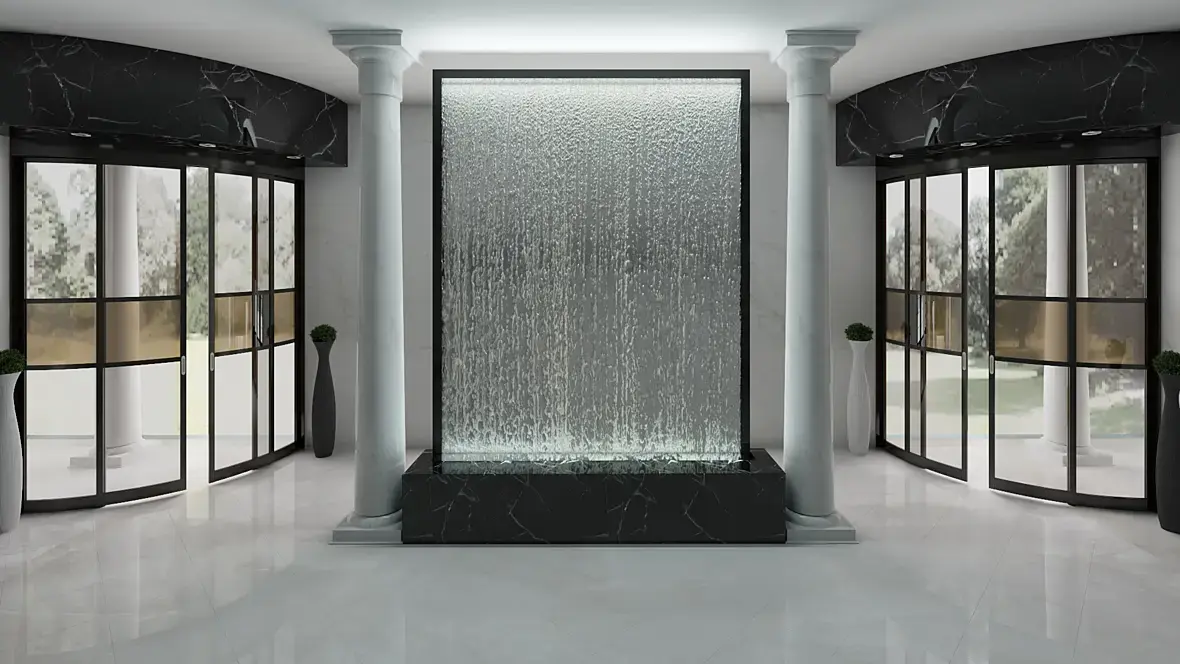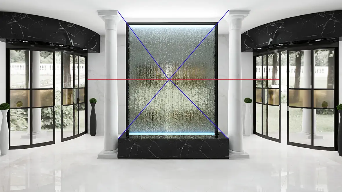 Возле дверей стоит по два лайта углом и два в водопаде.