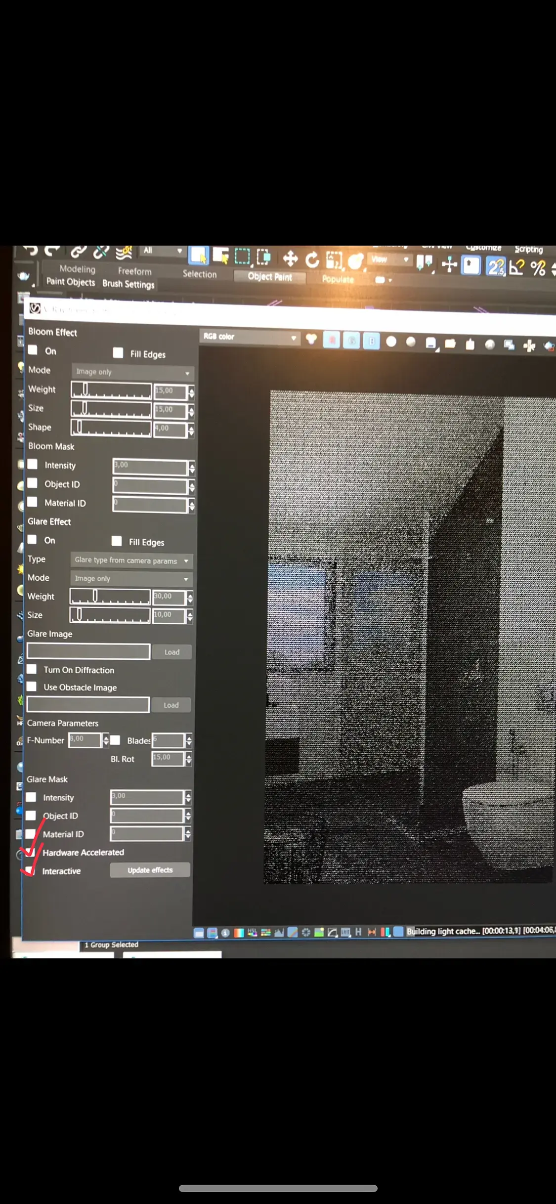 ну да, у вас включено, судя по скрину. по свечению спотов видно. то ли блум, то ли гларе, а может и вместе.