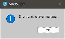 max2023 (25.0.0.997). Вот такая ошибка при каждом выходе, пока на ОК не нажмёшь - макс будет висеть в памяти. Если убрать кнопку Manage Layers с тулбара, то ошибка исчезает - но без кнопки как-то неуютно. )) Подскажите, в чём может быть дело.