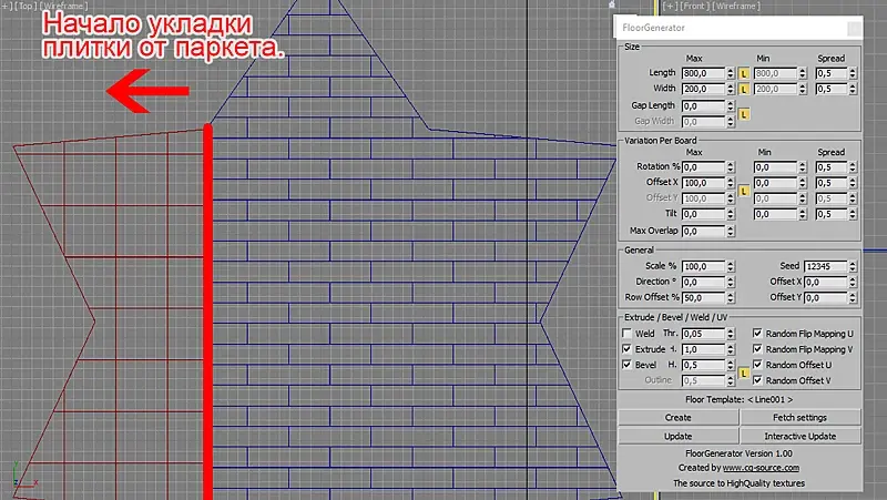 | Цитата beard02: порезать на части и на каждую часть накинуть свой Floor Generator. Не? Так на картинке то и показано? Одна часть "помещения" сложной формы плитка, вторая паркет. Плитка подрезкой выходит к паркету, а надо подрезку увести под стены. |