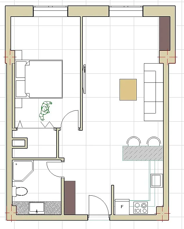 И второе. Получается, что у вас жилая комната расположена под кухней верхнего этажа (если не последний этаж) А это тоже нарушение норм. Да и по-человечески не очень. Ваши клиенты будут желать сладенько отсыпаться в воскресенье, а сверху будут лить воду в раковину и елозить табуретками по плитке.