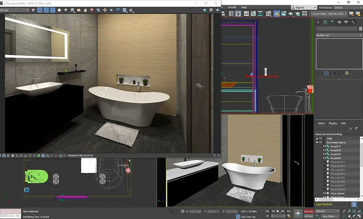 понял ... спасибо ... возьму на заметку ... вопрос ко всем ... есть небольшая сцена ( ванная комната ), в которой имеется потолочное освещение и светодиодная подсветка ... к кому из профи здесь на форуме можно обратиться с просьбой глянуть ее и подкрутить что надо по своему усмотрению? ... пересмотрел с десяток роликов по настройке освещения, камеры, но все ж не знаю насколько у меня получилось близко к идеалу. Я б тогда мог сверить с тем, что у меня и т.с. "вырасти" в профессиональном плане
