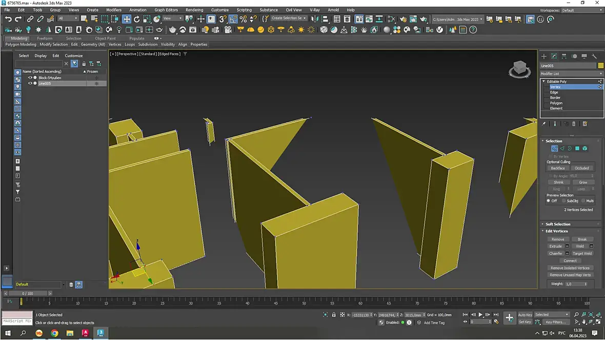 У вас судя по координатам выделенных точек оооочень огромная сцена, а 3д макс не любит сильно далекие отдаления от начала координат.