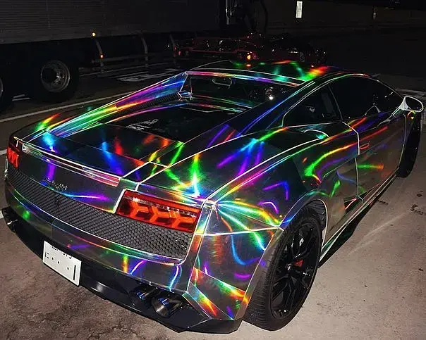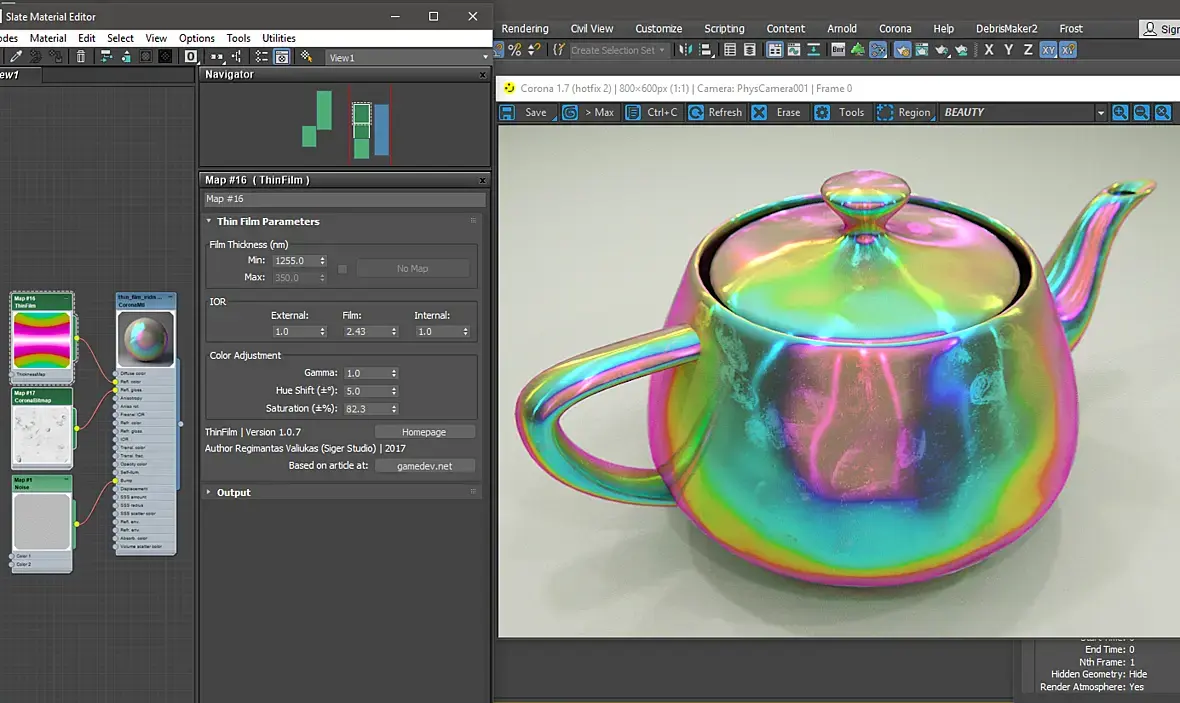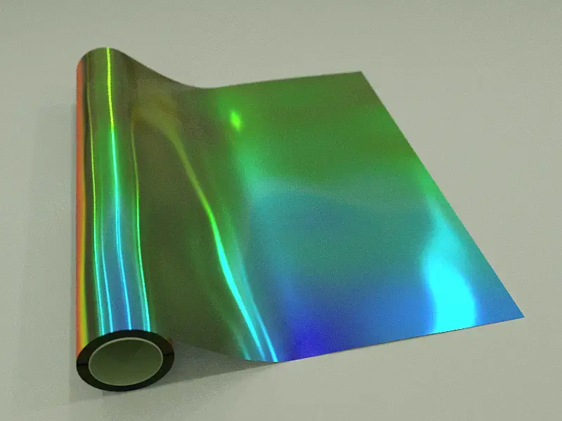 это иридесценция, и цвет меняется не только от угла обзора но и от угла освещения, в короне пока что можно только углом обзора делать градиенты. Октан и другие спектральные рендеры куда лучше сделают.