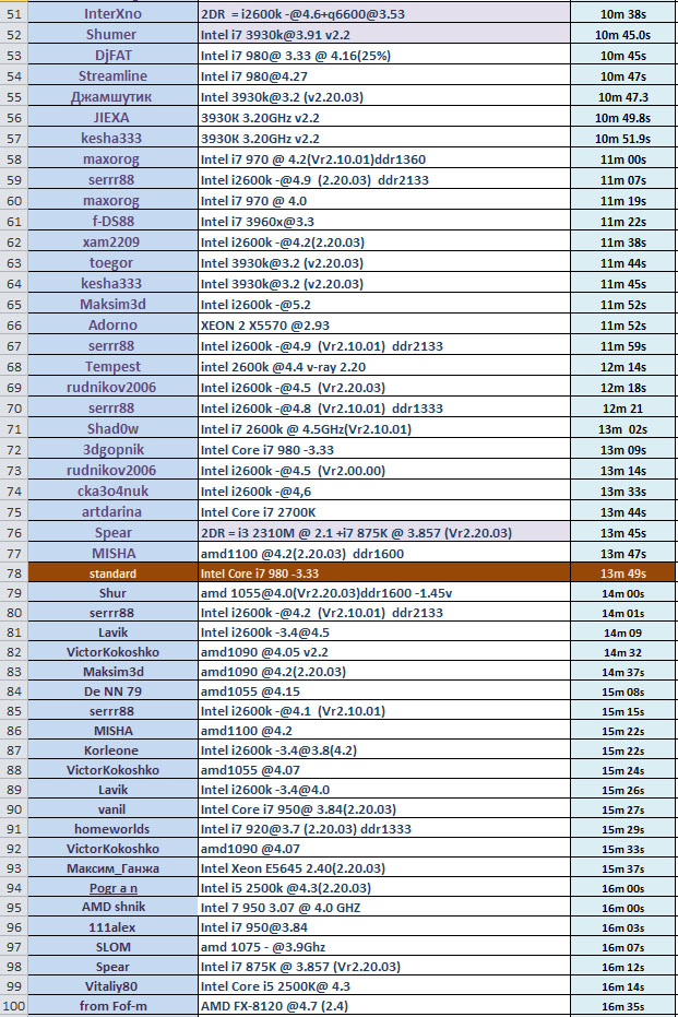Универсальная сценка LDR тест производительности CPU в связке макс вирей Как всегда, просьба рендерить "как есть" - открыли, - нажали рендер - ничего не меняя И там же, в пункте 3,Для энтузиастов - рендер ферм по рекомендациям 3Дящихся ещё более тяжёлая сцена LDR FARM NEW - Легкая сцена "минутка"LDR easy - для проверки производительности в пробах или просто быстрого теста макса-врея Сцена "минутка"- процессоры i7 3770k и FX 8350 - по умолчанию одинаково рендерят её за 60 секунд[/img] ПАКЕТ ТЕСТОВ ПОД VRAY 2.40.03 max 2013http://yadi.sk/d/5F9675kV34LNzhttp://4.bp.blogspot.com/-56fcXNp7vPg/UrPwImnXY-I/AAAAAAAADFs/77uURYKftQQ/s1600/LDR1.jpg