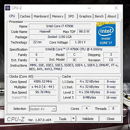 это все нормально. Когда проц простаивает он сбрасывает вольтаж и частоты. Когда его нагружать он врубает турбобуст и повышает вольтаж. Если загрузится одно ядро то 4,7ГГц, если все ядра то частота 4,2-4,4. Так же макс частота зависит от температуры, чем горячее тем проц медленне.