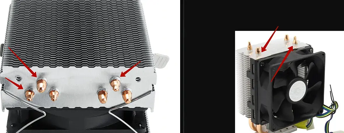 Скорей всего опоздал. Но на будущее всё равно расскажу. Наличие трубок ещё не означает нормальную работу. Трубки то тепло отводят, но в китайских как раз и становится вопрос именно отвода тепла от трубок к радиатору. Вот тут на картинке видно, что даже в бренде бюджетном трубка плотно сидит к радиатору. А в китае видна плохая запрессовка. Даже не скрывают