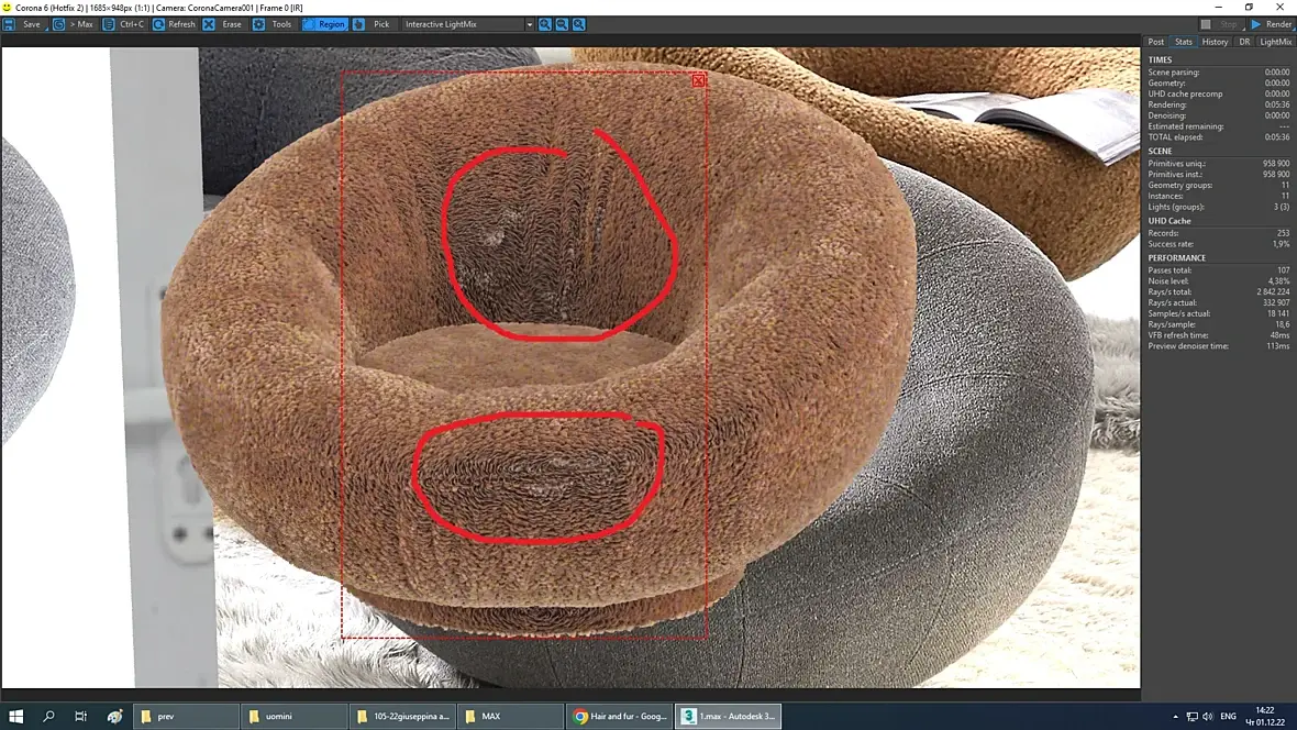 Так же, если комп тянет, к модификаторам можно добавить CoronaHairMod и снять или поставить там галку. Он будет рендерить волоски не плоскими, а цилиндрическими.