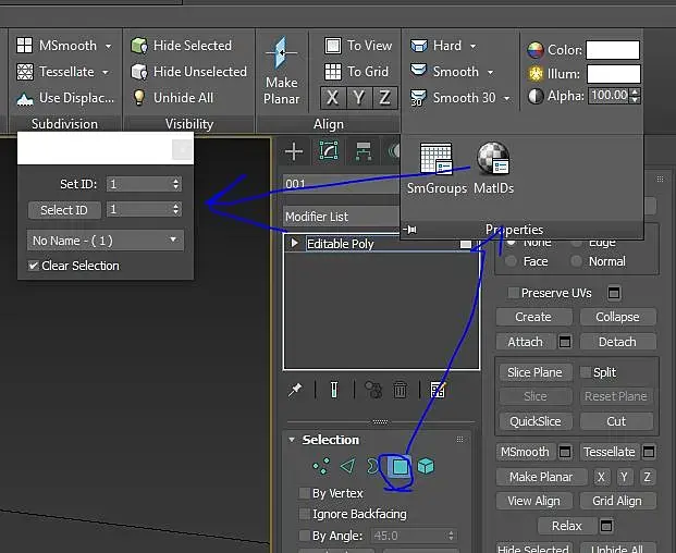 Просьба быть более ясным в ответах. То что каждому под материалу присваивается ID я в курсе, но где именно увидеть ID выбранного объекта или полигона? Дайте путь! Почему не говорите? Если я в модификаторе "Edit Poly" выбираю объект или полигон , то в контекстном меню "Object Properties" у выбранного объекта нет никаких ссылок на ID. Невозможно увидеть к какому материалу принадлежит выбранный полигон.