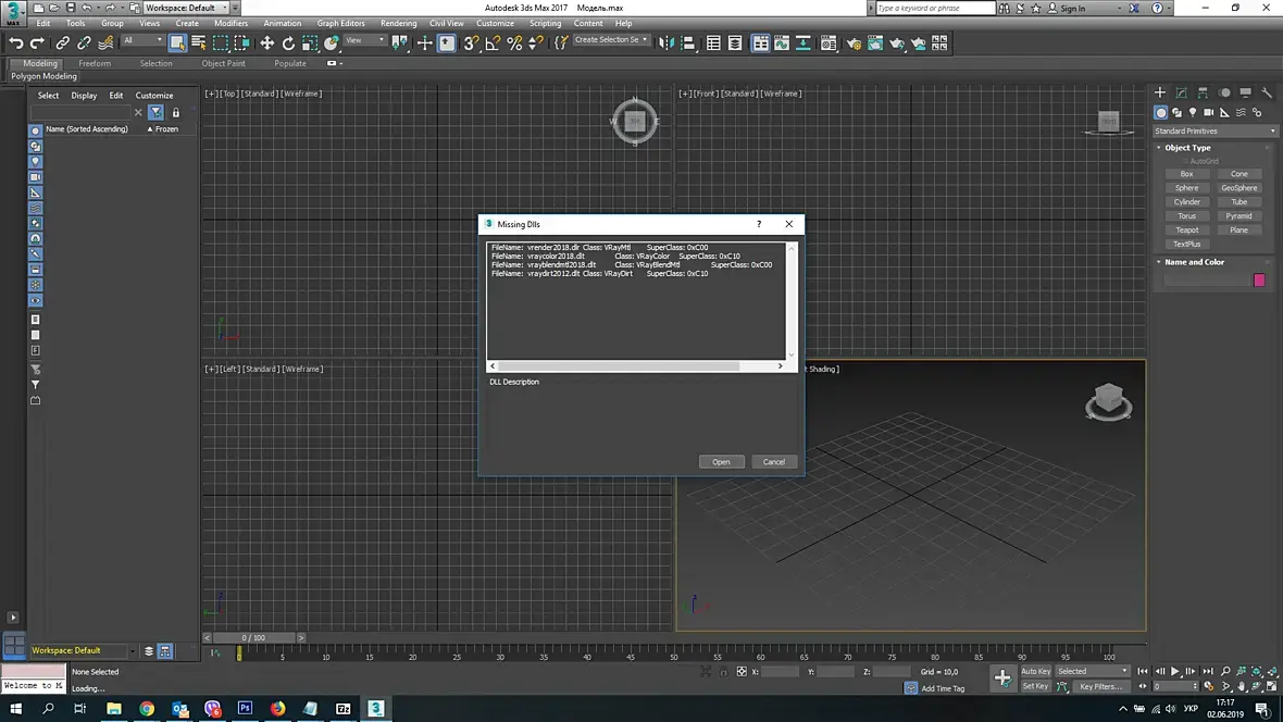 Ноут в ремонте, поэтому установила на старий макс 17 и корону. Когда импортирую в сцену макса об'єкти, то они все черные.