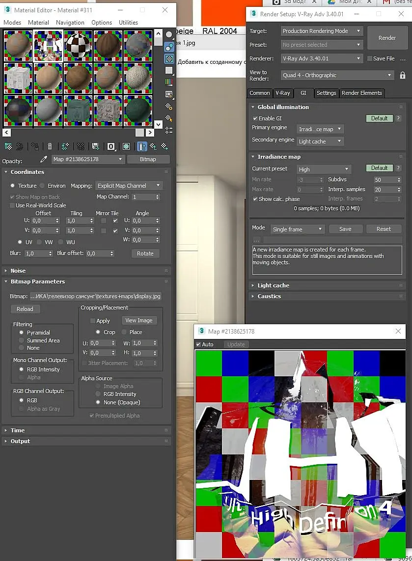 При рендере с ракурсов не фронтальных происходит такое искажение. В другой сцене этот телик работал норм , но картинку ставила не родню (эта родная- хотелось бы оставить)