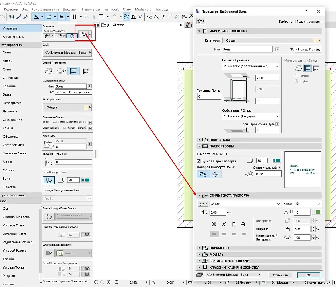 Здравствуйте, подскажите как изменить размер и шрифт марки площади в архикаде? Есть соответствующая вкладка в настройках инструмента Зона, но при изменении значений ничего не происходит, максимум что меняется это цвет шрифта. Архикад 23