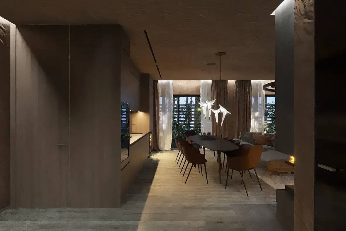 У вас на потолке текстура помятой ткани или бумаги , странно выглядит . Освещение не совсем понятное , вроде вечер за окном а справа как будто солнечные лучи в зените .