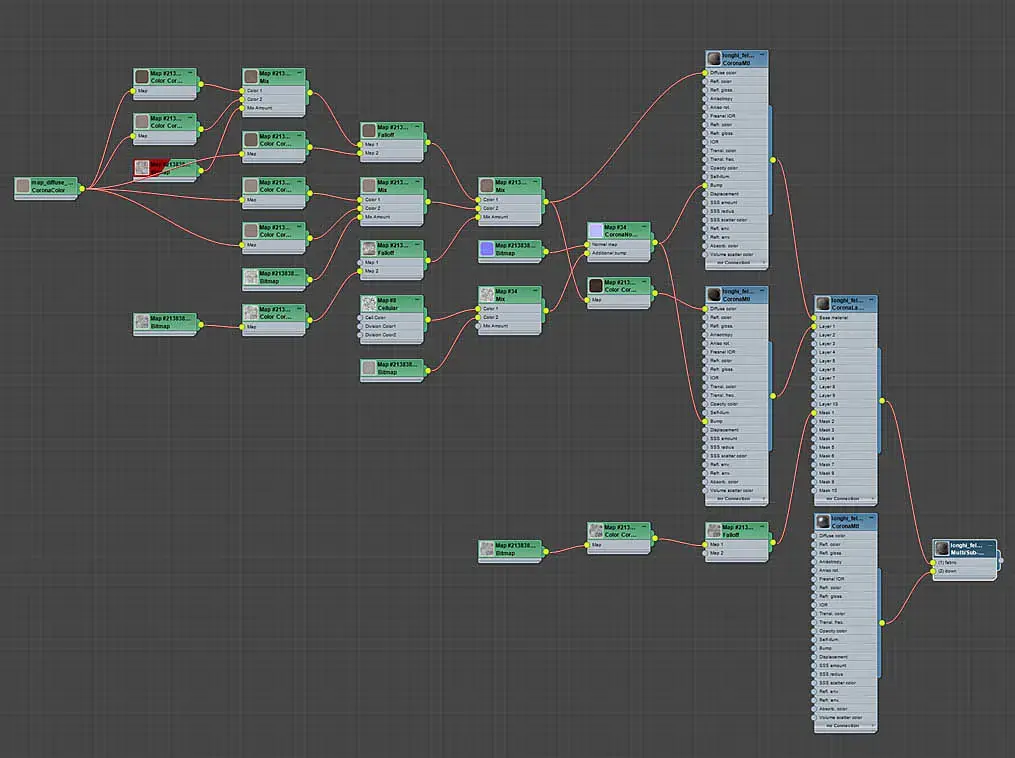 Есть материалы типа бленда и в них по несколько falloff.. Представляю чела, который собирает мат вроде такого по инструкции.