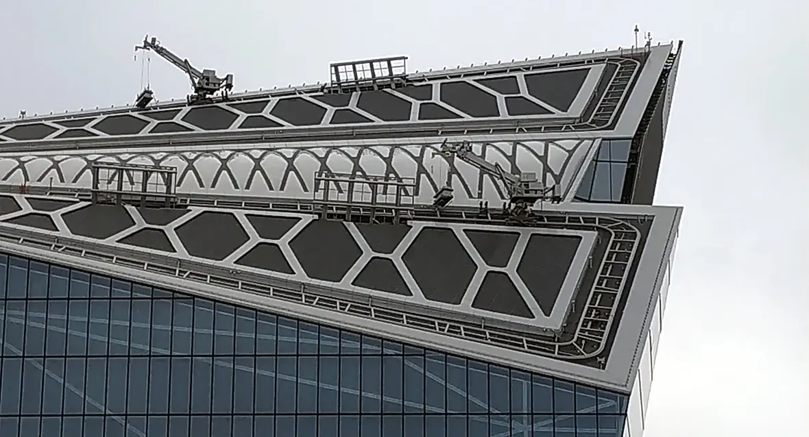 Ездил тут на объект, заснял как реализуется на "крупняке": по крыше проложены специальные рельсы, по ним катаются дистанционно управляемые механизмы, с их помощью доставляются необходимые грузы и, при необходимости, специалисты для обслуживания. Также есть специальные выходы на кровлю.