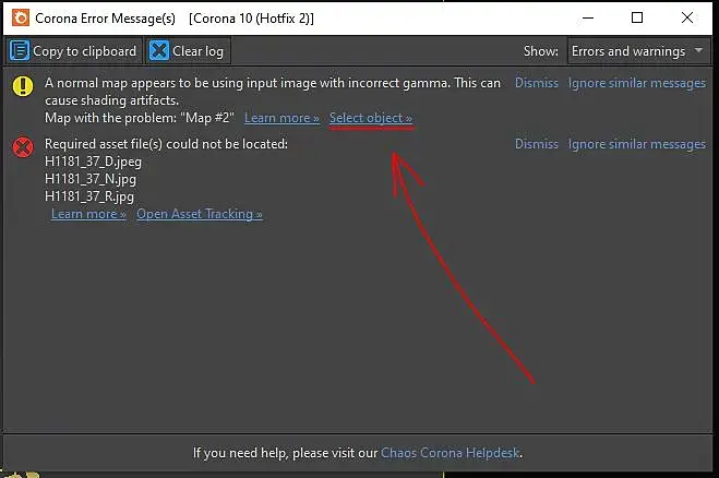 При ошибке карты нужно рядом с описанием ошибки нажать Select Object. Снять пипеткой материал с объекта (который выбрался), найти нужную карту по названию и уже смотреть что с ней не так.