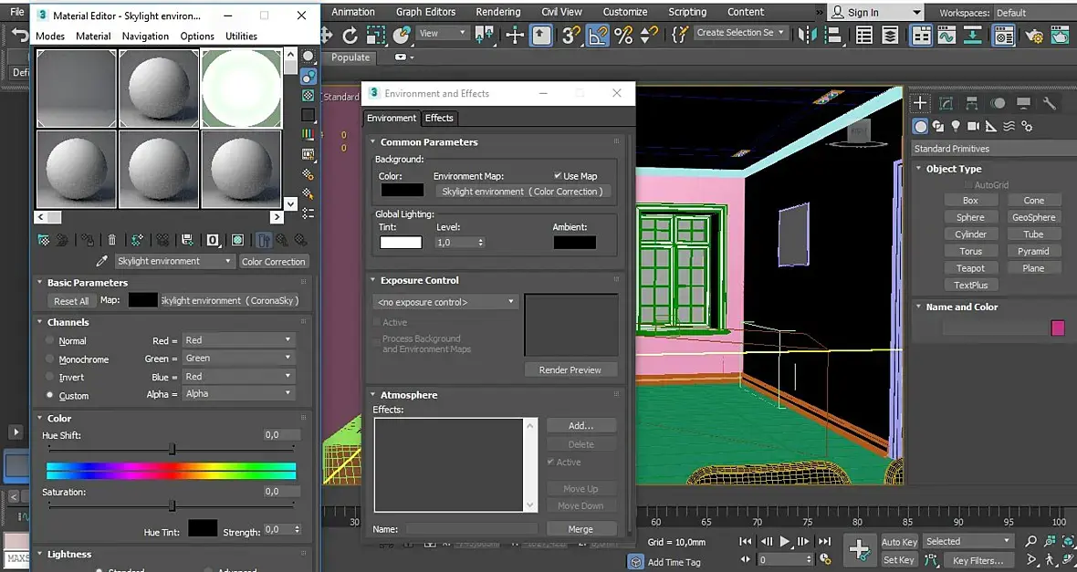 Всем привет! Я в короне новичок, поэтому простите, если вопрос тупой... Подскажите, как правильно настроить глобальное освещение, чтобы синева от Corona Sky не смешивалась с материалом стен. На стене в комнате материал светло-бежевой краски (почти белой), при рендере он становится с голубоватым оттенком. Если компенсировать балансом белого, то стена становится зеленоватой, в итоге реалистичного цвета стены не удаётся добиться.