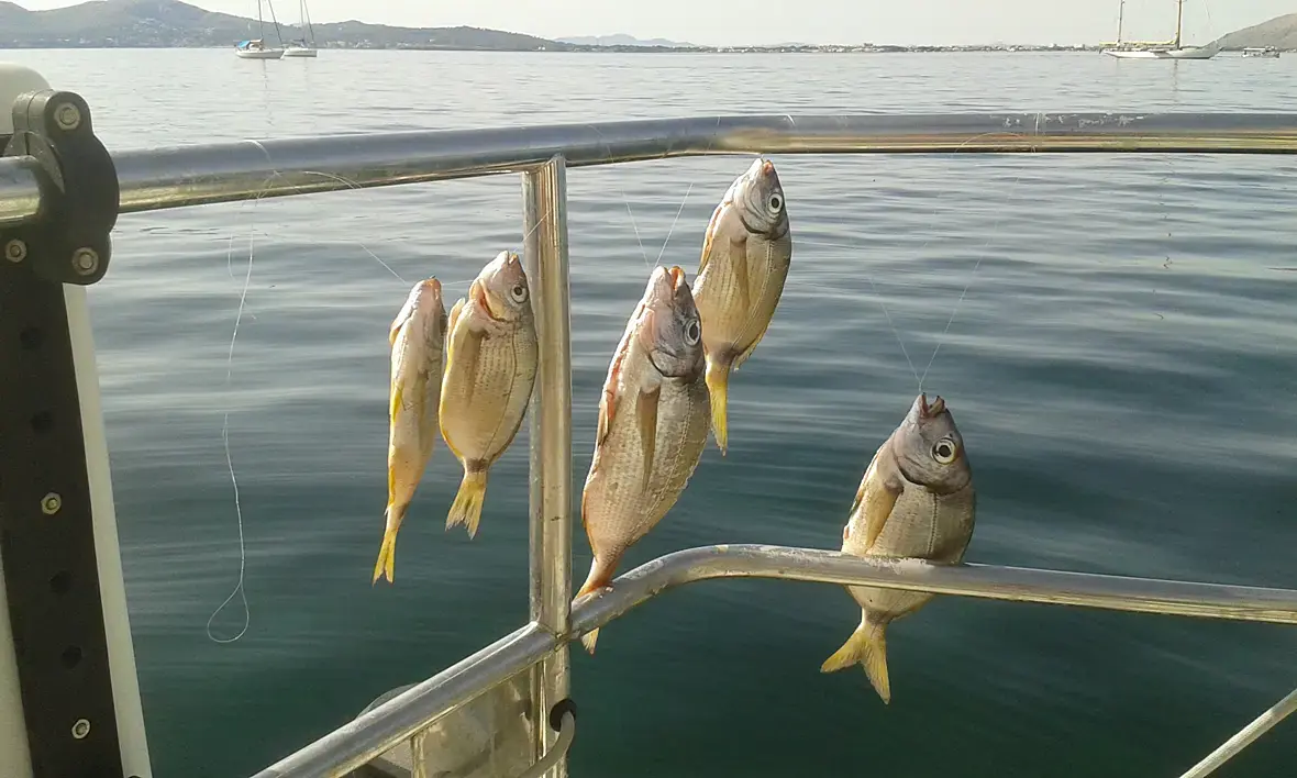 На парусной яхте несколько недель тусили по Средиземноморью. Был на борту спиннинг и леска с крючком. Из винной пробки и пера баклана сделали поплавок, ловили на кукурузу, мидии, хлеб. Лучше всего клёв был на сыр Эмменталь