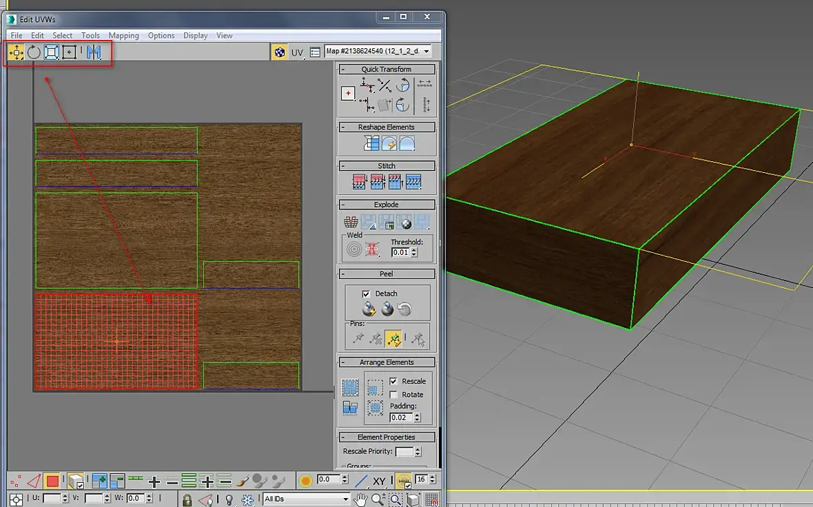 С помощю uvw xform немного выровнял текстуру, хотя все равно остались не очень ровные места .