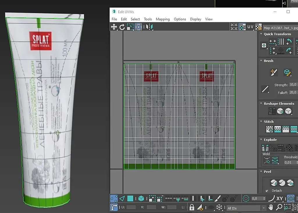 Даже если тюбик такой формы и вы разворачиваете по его форме, то и текстуру такой формы надо делать) Но это врятли правильно и не удобно)