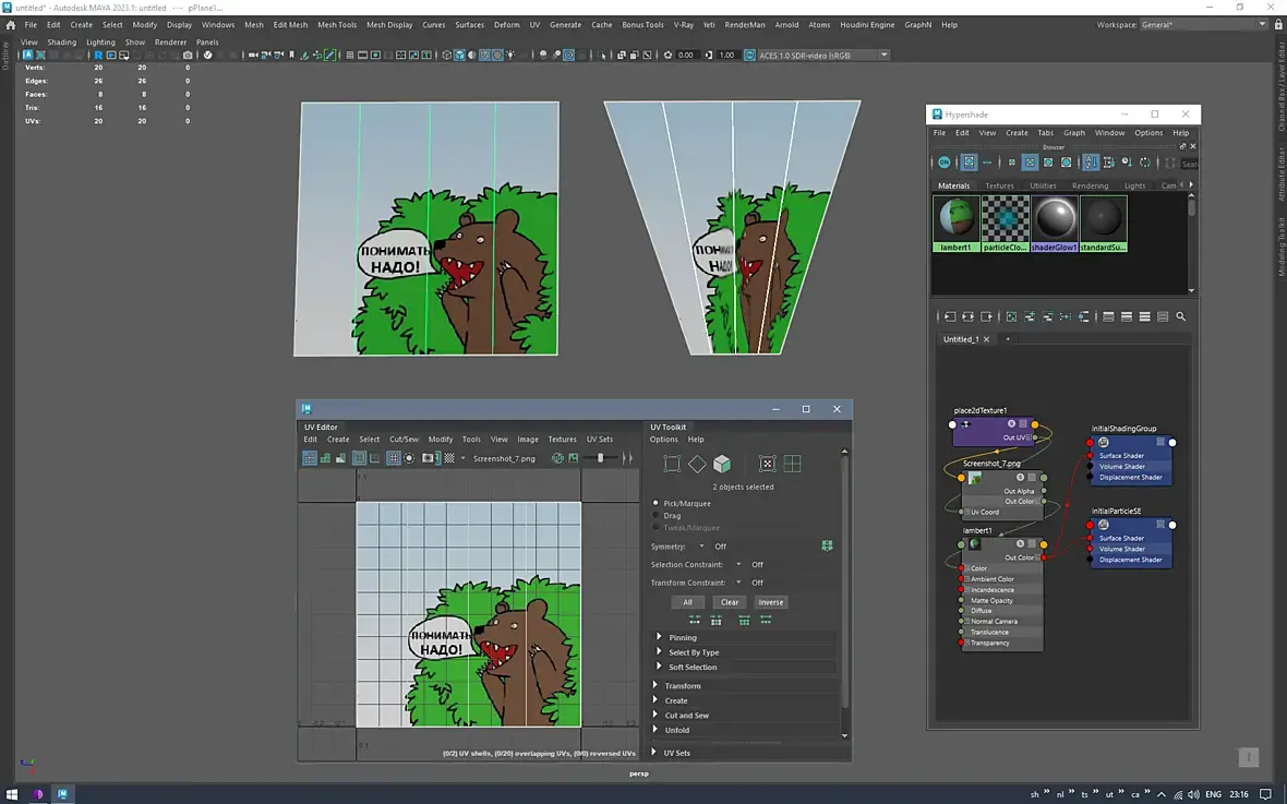 Я так делал с упаковками: Режешь тюбик ножницами, разрезаешь на цилиндр, получаешь прямоугольную ровную текстуру, натягиваешь на цилинр, плющишь его в тюбик. А натягивать сову на глобус такое...