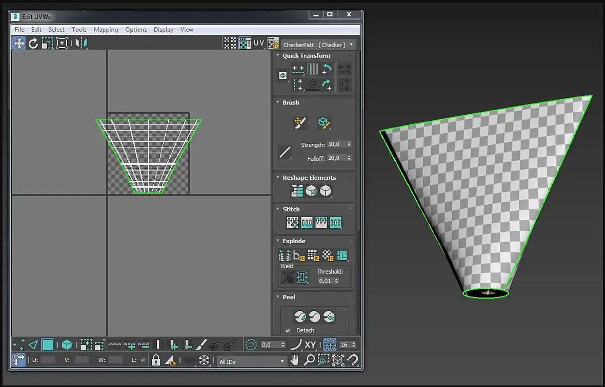 Вообще идея развернуть трапецеидальный меш в прямоугольный шелл займет достойное место среди "каустики в тени" и "настройке кривой между ключами в соседних кадрах" )))))