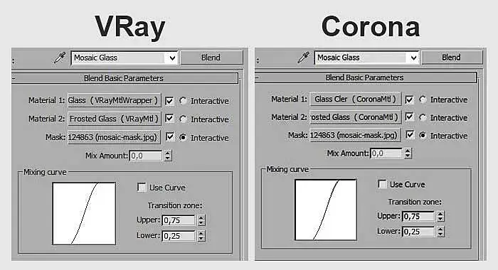 didopetro, через микс не получится, потому что материалы разные рефлект и глосси не настроишь. Поэтому только бленд. А здесь уже какой душе угодно, стандартный, виреевский, у короны тоже вроде есть там какой-то свой.
