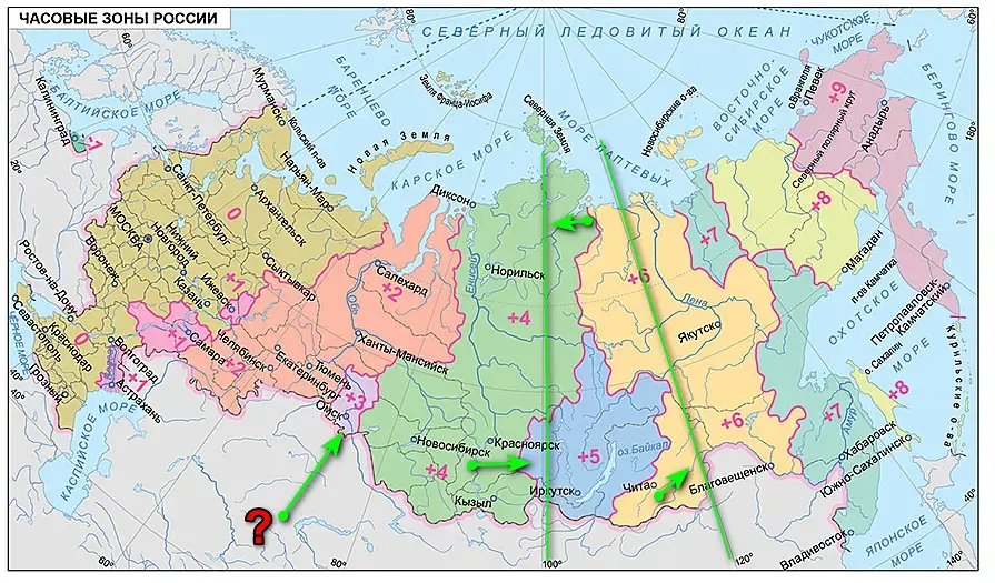 В вашем примере Омск "+3" - как раз посередине между "+2" и "+4", и границы поясов выставлены по административным.