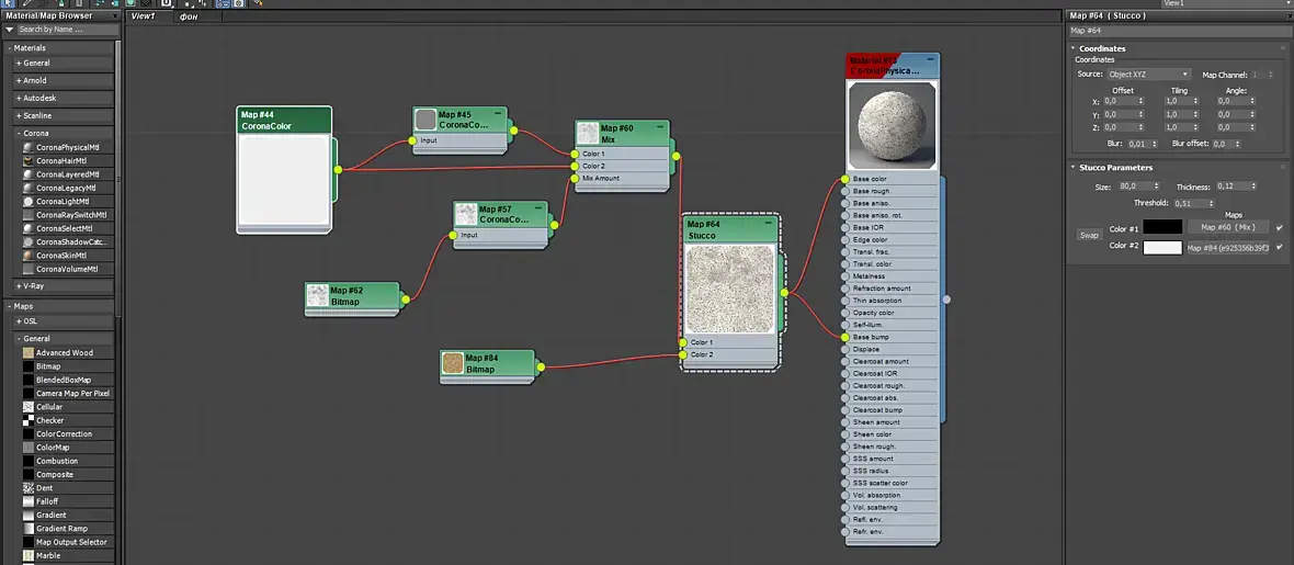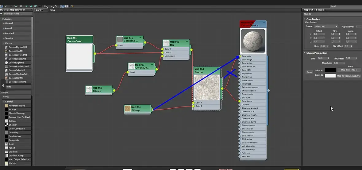 Так, с текстурой более-менее порядок, это мы выяснили. Значит вы что-то не то накрутили в материале. Я так понимаю, левый верхний блок с мксом, это заляпанная пальцами грязь, которую вы хотите подмешать к основной текстуре и почему-то делаете это через карту Stusso. Слишком громоздкая конструкция, как по мне, можно сделать намного проще.