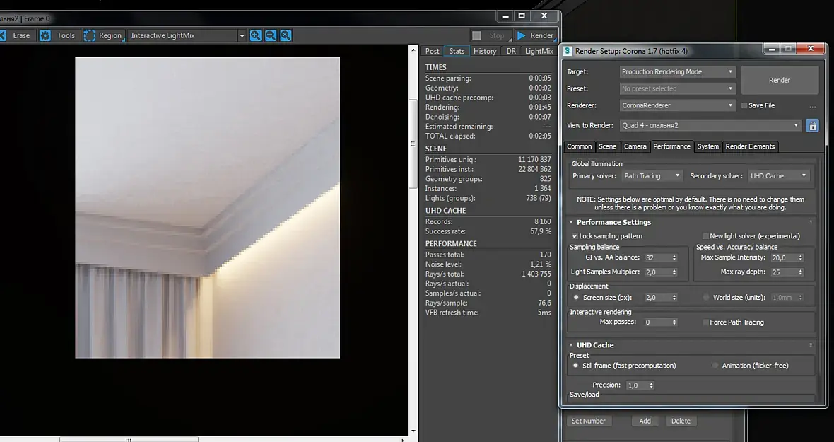 Как уменьшить шум в тени от environment (там просто corona output белая). Альбедо проверял.