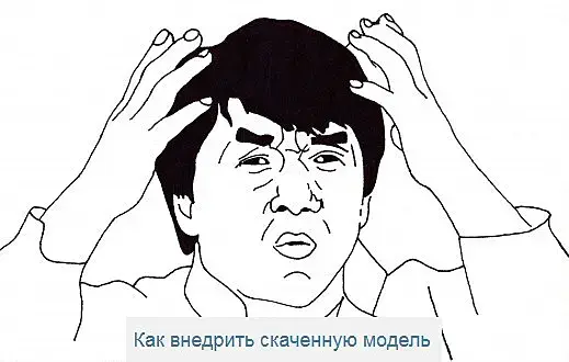 Я Вам уже писал, ищите курсы по 3д Макс и за месяц будете не только уметь "внедрять модель", но и мало мальски производить базовые манипуляции. А ажиотаж потому что Вы занимаетесь не тем.