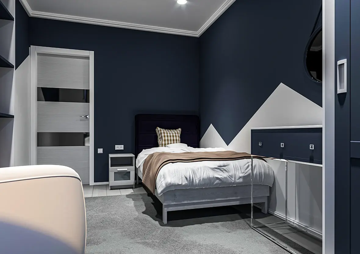 доработка нужна во всем, начни с освещения, потом поработай с материалами и посмотри композицию как правильно ставить. добавь декора, сделай клозапчики, и как то очень темно и холодно в комнате. попробуй другие цвета для детской, а то ребенок тут сума сойдет)