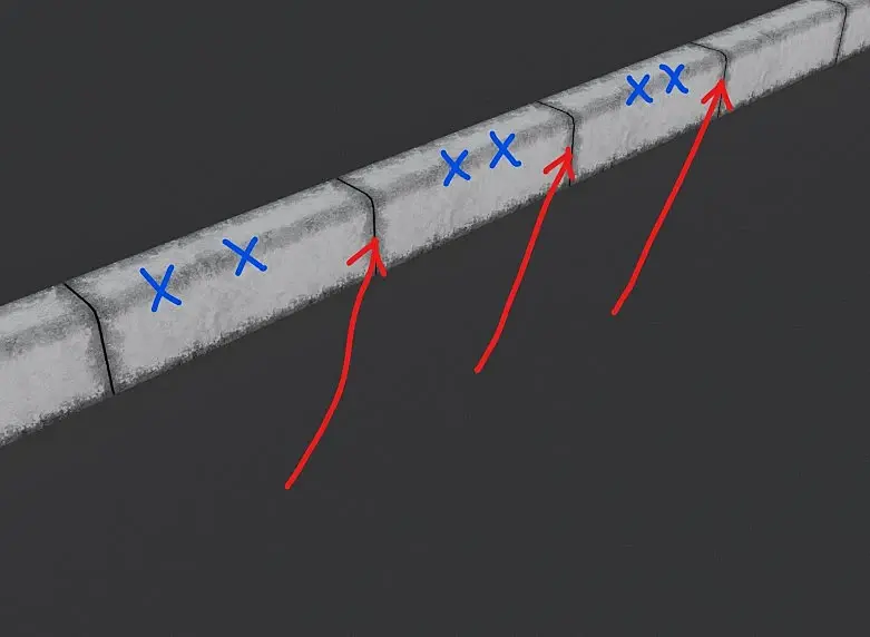 Всем привет. Для текстурирования бордюров (поребрик) применил карту corona АО для создания некоторых потертостей на вертикальных швах между бордюрами. Но эти потертости не нужны мне на горизонтальных ребрах моделей бордюра.(обозначены синим крестиком) Как решить проблему? Может есть другой способ? Думал distance использовать... Как думаете?